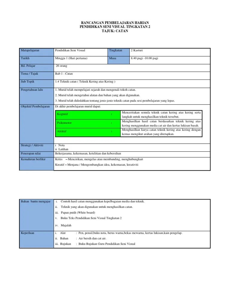 Teknik ini melibatkan sapuan warna basah ke atas permukaan kering untuk menghasilkan kesan legap. Teknik basah atas basah (a) warna yang disapu atas permukaan kertas yang basah. Kelebihan arang ialah menghasilkan kesan gelap yan maksimum . Kesan atau rasa sesuatu permukaan. Untuk dapat menghasilkan gambar yang menarik dibutuhkan. Catan ialah proses menghasilkan seni dengan menggunakan bahan berwarna atau atau cat yang disapu ke atas sesuatu permukaan yang rata. (b) sesuai untuk menampakkan kesan air atau awan. (c) sesuai untuk menghasilkan kesan warna lut sinar. Perbezaan kaedah cetakan terletak pada bahanyang digunakan. Teknik basah atas basah (a) warna yang disapu atas permukaan kertas yang basah. Setiap kaedah cetakanakan menghasilkan pelbagai cetakan yang berbeza. Menghasilkan kesan warna legap (opaque).